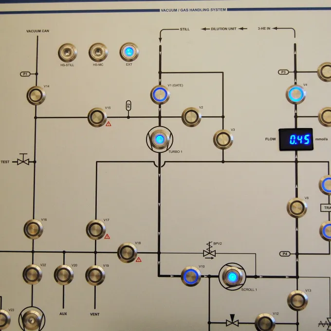 Professor Kater Murch’s group uses nano-fabrication techniques to construct superconducting quantum circuits that allow them to probe fundamental questions in quantum mechanics.